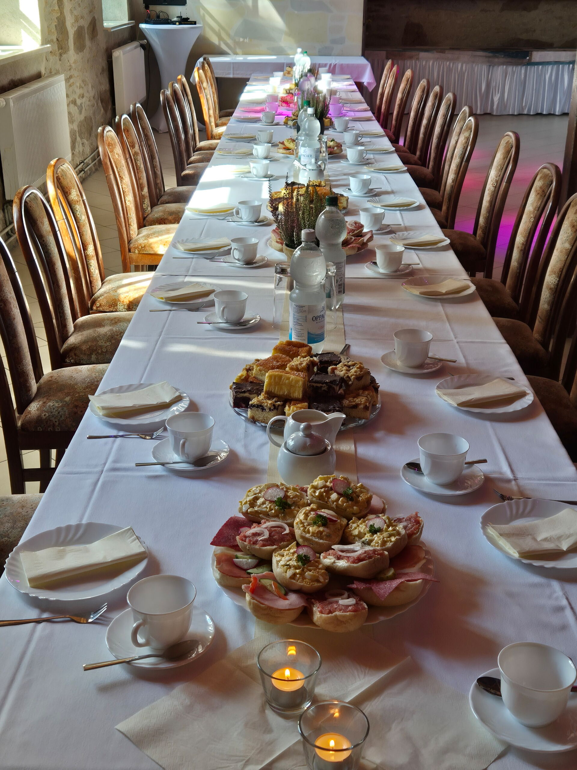 Das Catering kann bequem über einen Partyservice organisiert werden, gerne unterstützen wir Sie mit Empfehlungen. Zudem können Sie unsere hauseigene Musik- und Lichtanlage nutzen. Auf Wunsch vermitteln wir Ihnen auch einen preisgünstigen DJ.